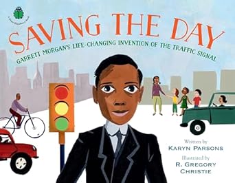 In rhyme, Ms. Parsons shares Garrett Morgan's childhood and his idea for the traffic signal. She imagines a story to highlight his invention. She also reveals he that invented many other helpful objects but only shares one other device-a gas mask.